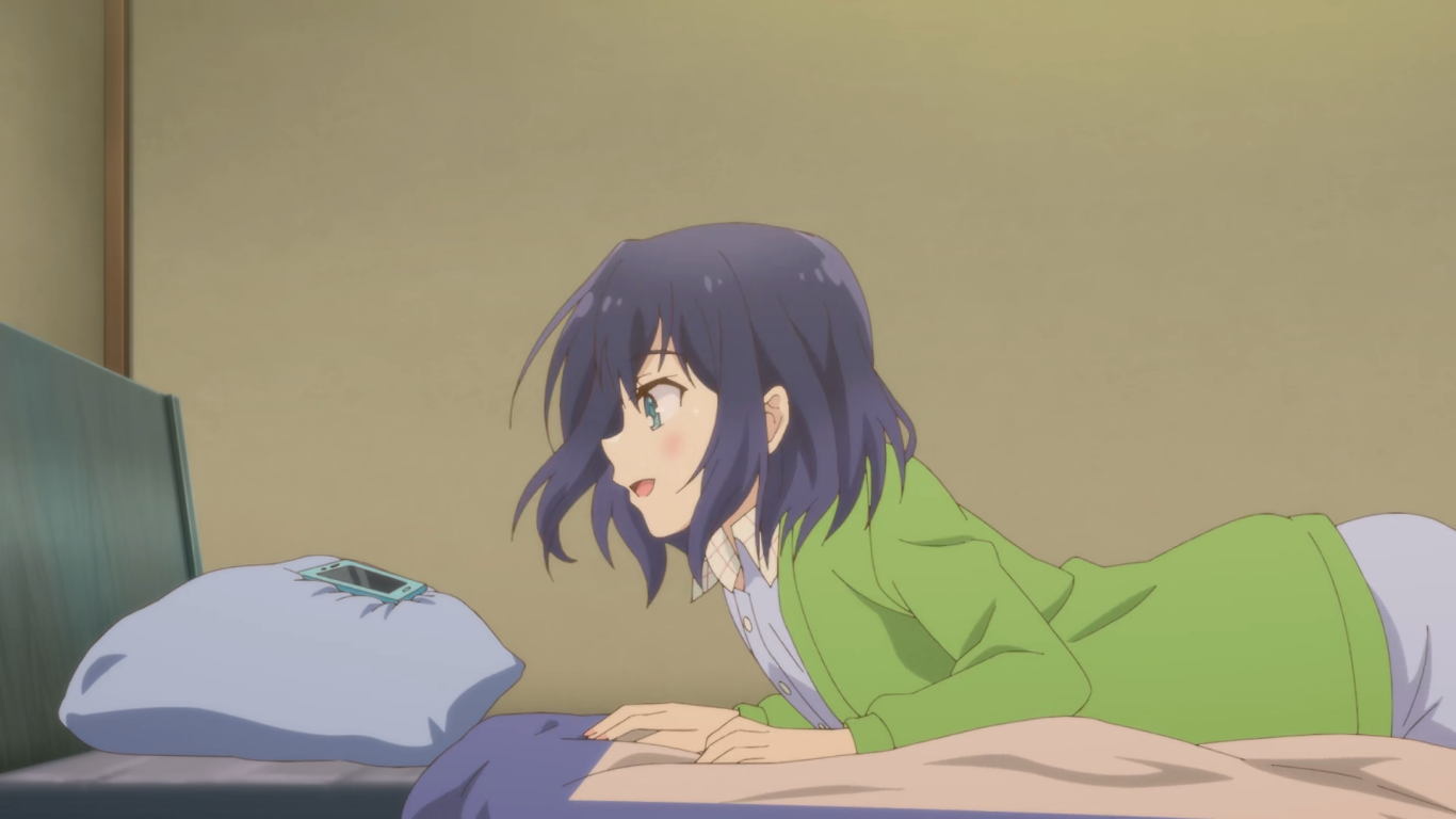 Episode 4, as its titles suggests, is a laid-back episode – though, all of Adashima’s episodes are pretty laid-back in their own right. It focuses on Shimamura and gives another peek at her constant internal struggle of trying to fit into the world she inhabits, which has become a recurring theme In the story. She runs into Adachi’s mother at the swimming pool and the wrong kind of sparks fly between them. The two start pissing each other off about how one could be a good mother to their child. Clearly, that argument could only have been resolved in a ‘steamhouse resistance match’ to prove who’s right. Adachi’s mom eventually gifts Shimumura the victory but her point had been proven by then. Shimamura later invites Adachi to hang out with Nagafuji and Hino and the prospect expectedly doesn’t call for excitement on Adachi’s part but she agrees as it would allow her to spend more time with Shimamura. The four of them hang out as planned – Nagafuji and Hino are quick to welcome the newcomer into the team, Adachi is expectedly awkward and makes puppy-dog eyes towards Shimamura throughout. They sing at a Karaoke bar and later ride home together. Adachi asks to makes a pit-stop at a playground. They sit at the swings and Adachi is steadfast in her resolve to tell Shimamura exactly how she feels. She’s practiced that moment multiple times. But… it never comes. Shimamura in turn gives her a head-pat because she looks like she desperately needs one (don’t we all?) and in the moment, that’s more than enough for her.