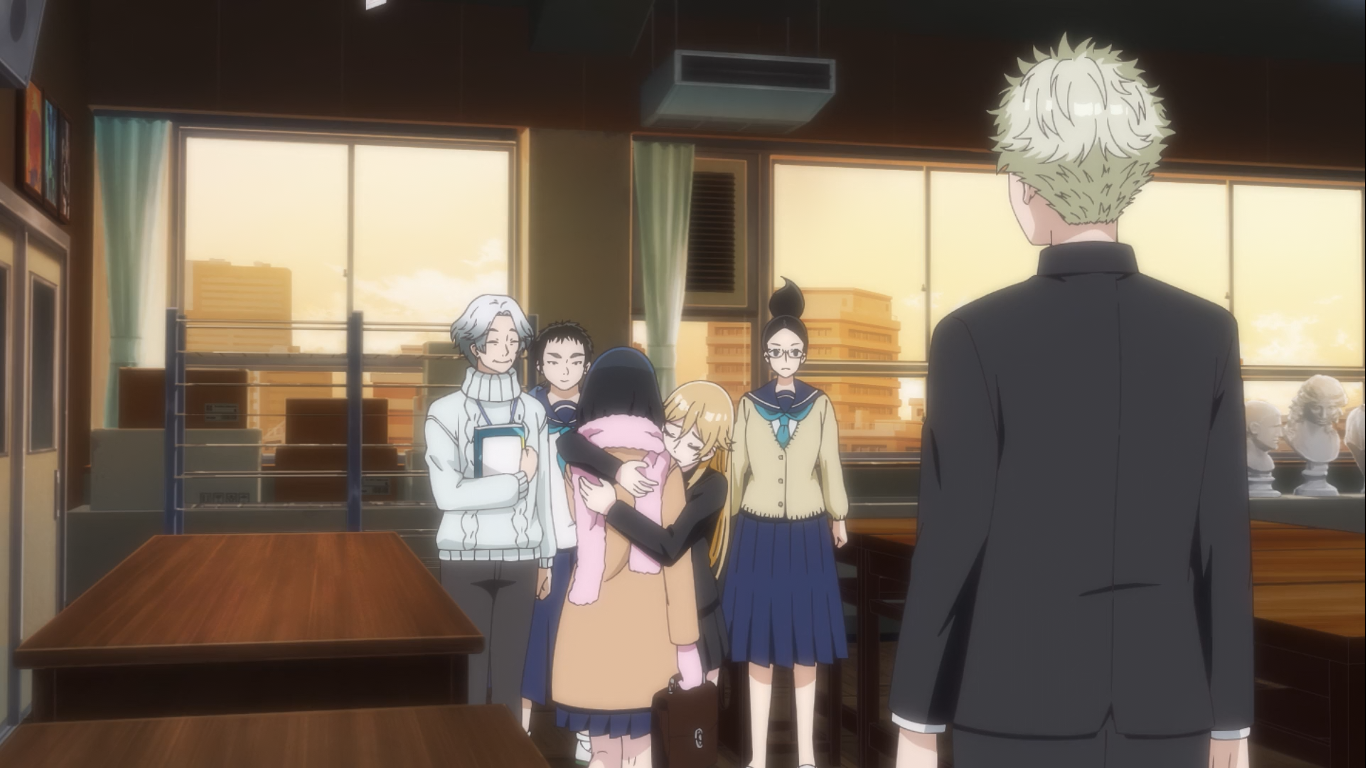 Right. With all that out of the way, we now come to the meat and bones of this episode, i.e. the plot. I actually find Blue Period to be a deceptively complex series. It’s built up on a foundation that’d be perfect for a run-of-the-mill shounen but it never goes that route. It instead takes a similar approach to March Comes in Like a Lion in the depiction of its characters’ emotions but never fully embraces the tearjerker elements of that series, either. Not to mention how it goes it treats its themes of fine arts with the depth of something like Fune wo Amu. It’s somehow simultaneously like many different series but also entirely singular.