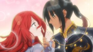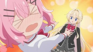 Wooper: Of all the anime genres out there, the one that makes me most conscious of the new fan experience is romance. How would a teenager – or even someone a little older, but without the burden of a hundred animated love stories under their belt – feel about a first episode like Fragrant Flower’s? I can’t presume to speak for that demographic, but my intuition tells me they’d like it a lot. It’s packed with tropes that even a newcomer would recognize as such: boy and girl from different social strata, boy looks scary but has a heart of gold, boy sustains injury while protecting girl from hooligans after dark, etc.. The visuals are top shelf, though, so the characters’ words and actions could easily spark the imagination of someone new to romance anime. Expressions of disgust, boredom, and fascination are expertly drawn, making the divide between Rintaro and Kaoruko’s worlds – as well as his internalization of his bad reputation – potent weapons in the show’s arsenal. Shots of their neighboring school buildings, their detailed classrooms, and especially Kaoruko’s covert position in her favorite cake shop create confidence in the show’s overall direction. Chubby-cheeked chibi versions of various characters lend a bit of humor to a setup that might otherwise feel too serious, and they’re spaced out enough that they might charm someone who hasn’t already had their fill of the technique. To put it simply, Fragrant Flower has a lot going for it, so even though I found its first outing disappointingly familiar, I have to respect its game.