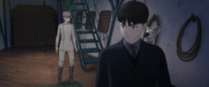 In keeping with the investigative tone of episode 8, these four episodes were largely concerned with Yoshiki’s quest to learn the truth of the legends surrounding his hometown. Even a climactic moment like the lurking Company man Tanaka decapitating Hikaru during an audience with one of the village elders ended up taking a back seat to research and flashbacks (Yoshiki reattached his severed head within seconds). As a result, this phase of the show was my least favorite thus far, though the announcement of a second season helps matters quite a bit. There’s still so much we don’t understand with regard to the aforementioned “Company,” which seems to have roots in the spirit world, though the show did tease us with one of its other members appearing at Kurabayashi’s doorstep toward the end of episode 11. Speaking of Kurabayashi, the mysterious housewife played a much bigger role in the first season’s closing chapter than at any other point in its run, advising both boys on how they ought to manage Hikaru’s eldritch condition, and internally monologuing about both his burgeoning humanity and the incalculable threat he poses to ordinary humans.