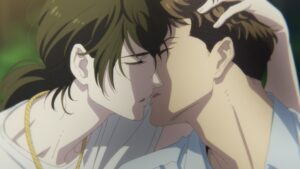 I think I previously described the show as grief-themed, but these episodes really opened it up to speak about isolation, and not only that of the two primary characters. When Asa lost her mother, her grandmother also lost a daughter, and Makio and Asa’s visit to the widowed matriarch’s home was thick with solitude and regret. Emiri’s interest in others’ love lives and hesitation to discuss her own may indicate confusion about her own sexuality, putting distance between her and her peers (Makio recommends her a DVD labeled “Tomatoes,” likely the LGBTQ-adjacent 90s film Fried Green Tomatoes, as a way of connecting with her). And Kasamachi, who had his heart broken by Makio in the past, has a measured conversation with her about resuming their physical relationship, even if it may be unfair to one or both of them emotionally. As someone who’s watched entirely too much anime, it’s not often that I can’t predict where a show will take a particular plot thread, but I have no idea whether this reunion will ultimately end in love or loneliness, so I’m enjoying the lifelike imprecision of it all.